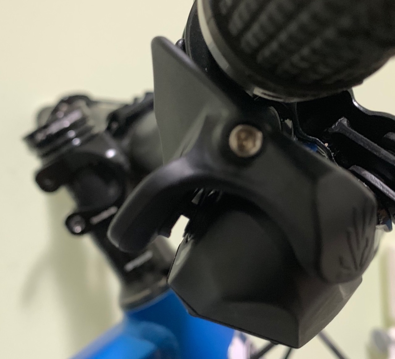 Vaihdevipu on ärsyttävä. Piste. En pidä tavasta, jolla se on suunniteltu uudelleen vain sen takia, että se oli tässä tilanteessa mahdollista. Vaihtaminen tapahtuu nyt keinukytkimellä, jota ylöspäin niksauttamalla vaihde vaihtuu alaspäin (fyysisesti pienemmille rattaille) ja alaspäin niksauttamalla ylöspäin (fyysisesti isommille rattaille). Näin siis oletuksena, toiminnan voi reversoida appsissä. Lisäksi keinukytkin on akseloitu siten, että sen etupuolelle jää jonkinlainen painopinta (tästä oletuksena kliksauttamalla vaihde vaihtuu siis alaspäin eli fyysisesti pienemmille rattaille). Tämä painopinta osuu suunnilleen etusormen kohdalle. Tuntuu hassulta ajatukselta tiputtaa sormi jarrukahvalta tuonne väliin vaihteen vaihtamista varten.