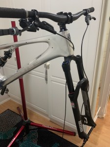 Hieman tietysti alkoi sitten mietityttämään tuo aiempi kokemus Canyonin 140 joustavasta pyörästä. Vaikka kuinka kehutaan uusien iskareiden toimivuutta pidempijoustoisissa pyörissä, niin onko se kuitenkin aina jonkinlainen kompromissi poljettavuuden suhteen? Niiaako pyörä liikaa hitaassa maastoajossa ja onko 64 (!!!) asteen keulakulma jo liian loiva näppärään käsittelyyn?