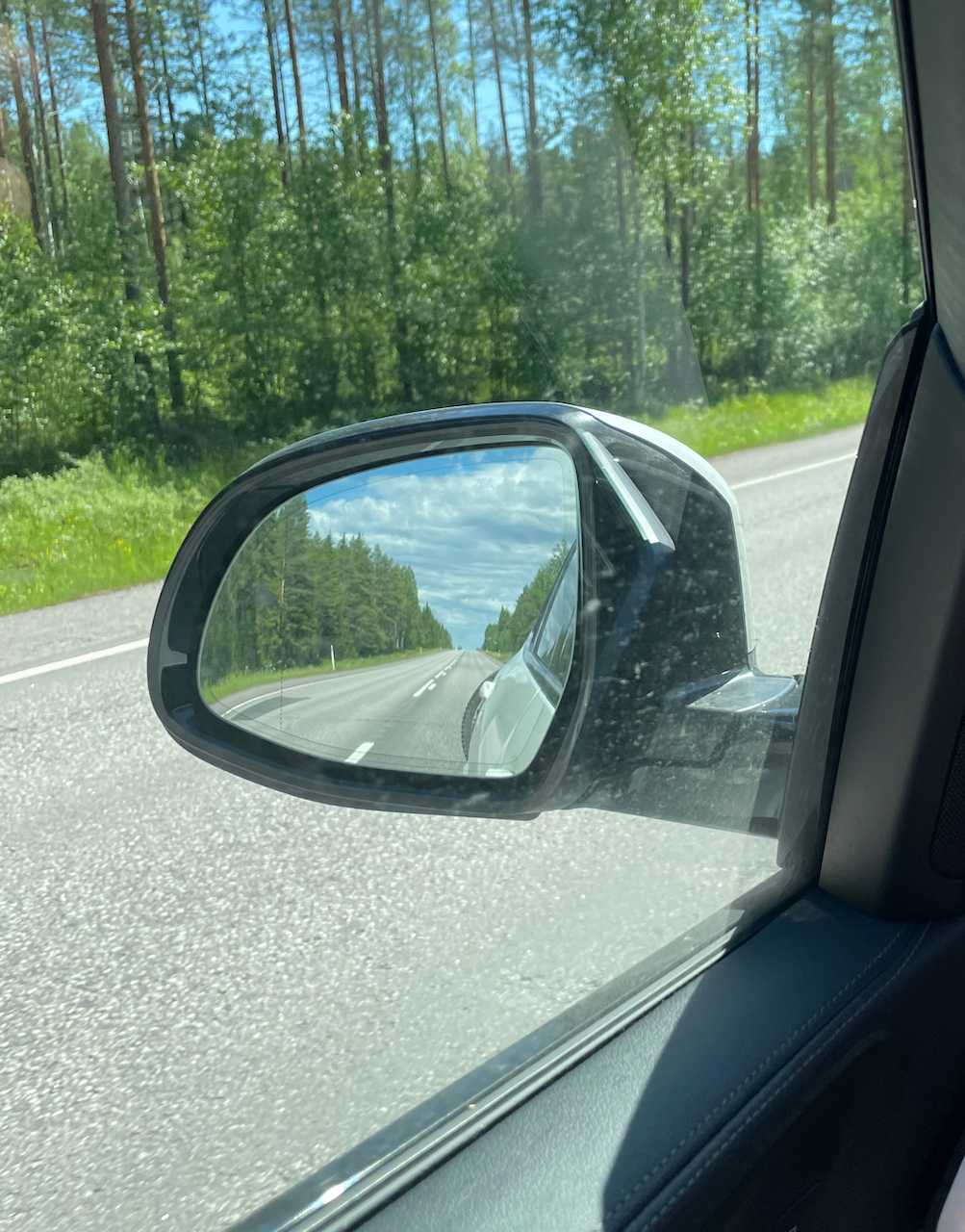 Ajossa en huomannut telinettä mitenkään. Itse teline painaa 23,1kg eli Voiman ja Staminan kanssa yhteensä 64,6kg. Tuohan on ihan normaalin perävaunun aisapainon lukemissa. Ajaessa pyörät ei juurikaan näy, takalasista tietysti näkyy ja siitä onkin hyvä tarkkailla miten ne kyydissä kestää. Omalla reissulla takakontti oli kuitenkin kattoa myöten täynnä, joten nämä sivupeilin näkymät jäi ainoiksi.
